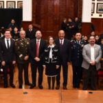 El presidium se encuentra encabezado por el Presidente Municipal, Cruz Pérez Cuéllar, y su esposa y titular del DIF Rubí Enríquez, así como funcionarios municipales, autoridades militares y educativas.