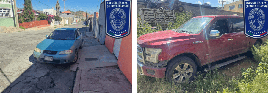 Elementos de la Agencia Estatal de Investigación (AEI) adscritos a la Fiscalía de Distrito Zona Sur en el municipio de Parral, recuperaron dos automotores que contaban con reporte de robo.