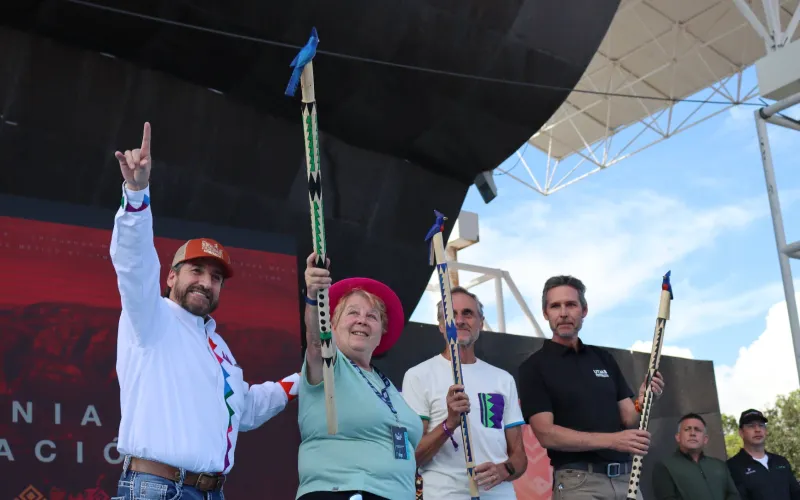Durante el acto de cierre, Gómez Gallegos entregó bastones de mando rarámuri a los fundadores del circuito y al comité organizador.