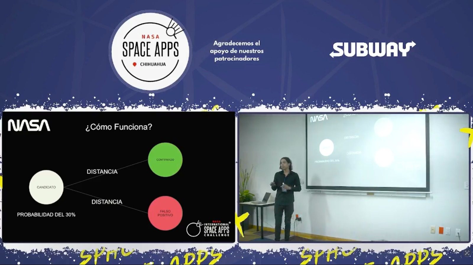 Grijalva Romero presentó el proyecto “A World Away: Hunting for Exoplanets with AI”, en el cual desarrolló un modelo de aprendizaje automático (Machine Learning) que busca acelerar la detección de exoplanetas a partir de los datos obtenidos por el telescopio Kepler.