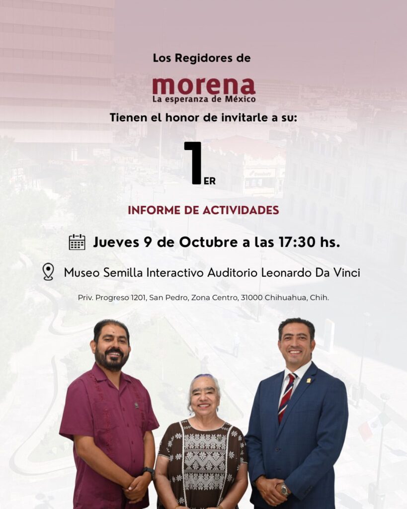 La entrega formal del informe se llevará a cabo en un evento público en el Museo Semilla, dirigido a militantes y simpatizantes del movimiento. En este acto, los regidores presentarán de manera transparente los resultados de su trabajo, detallando propuestas y acciones implementadas en beneficio de la comunidad juarense. . .