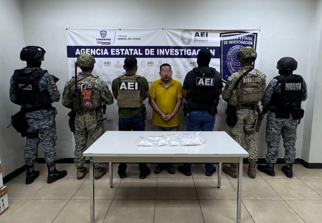 Por medio de una orden de cateo, la Fiscalía de Distrito Zona Norte a través Agencia Estatal de Investigación y con el apoyo del Ejército Mexicano y Guardia Nacional, detuvieron a un hombre por encontrarse en posesión de casi medio kilogramo de droga.