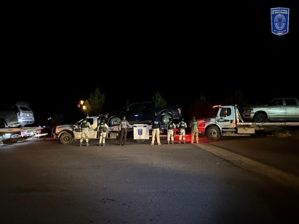 La Base de Operaciones Interinstitucionales integrada por elementos de la Agencia Estatal de Investigación, de la Secretaría de la Defensa Nacional y Guardia Nacional, aseguraron cuatro vehículos con reporte de robo en el municipio de Nonoava.