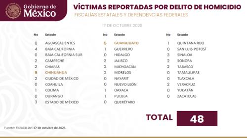 CHIHUAHUA VIVE JORNADA VIOLENTA MIENTRAS AUTORIDADES ESTATALES PRIORIZAN INTERESES POLÍTICOS. . . El pasado viernes 17 de octubre, Chihuahua se posicionó como el estado más violento de México al registrar nueve homicidios en un solo día, superando a otras entidades que históricamente han enfrentado altos índices delictivos. Esta cifra evidencia el agravamiento de la crisis de seguridad que afecta a los chihuahuenses, quienes enfrentan diariamente el temor y la incertidumbre ante la falta de resultados concretos en la estrategia estatal. . .