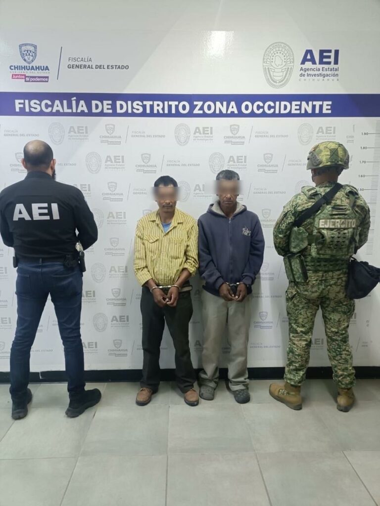 Hechos por los que fueron detenidos por elementos de la Agencia Estatal de Investigación en coordinación con personal de Ejército Mexicanos, el pasado miércoles 15 de octubre en la localidad de Repechique, municipio de Bocoyna.