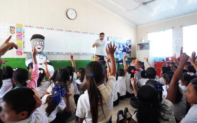 La Junta Municipal de Agua y Saneamiento (JMAS) de Chihuahua llevó el programa de “Los Aguardianes” a más de 400 estudiantes de la escuela primaria Sor Juana Inés de la Cruz, en la colonia Jorge Barousse.