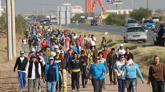 – Apoyo a los peregrinos durante su caminata desde la Puerta de Chihuahua hasta el recinto