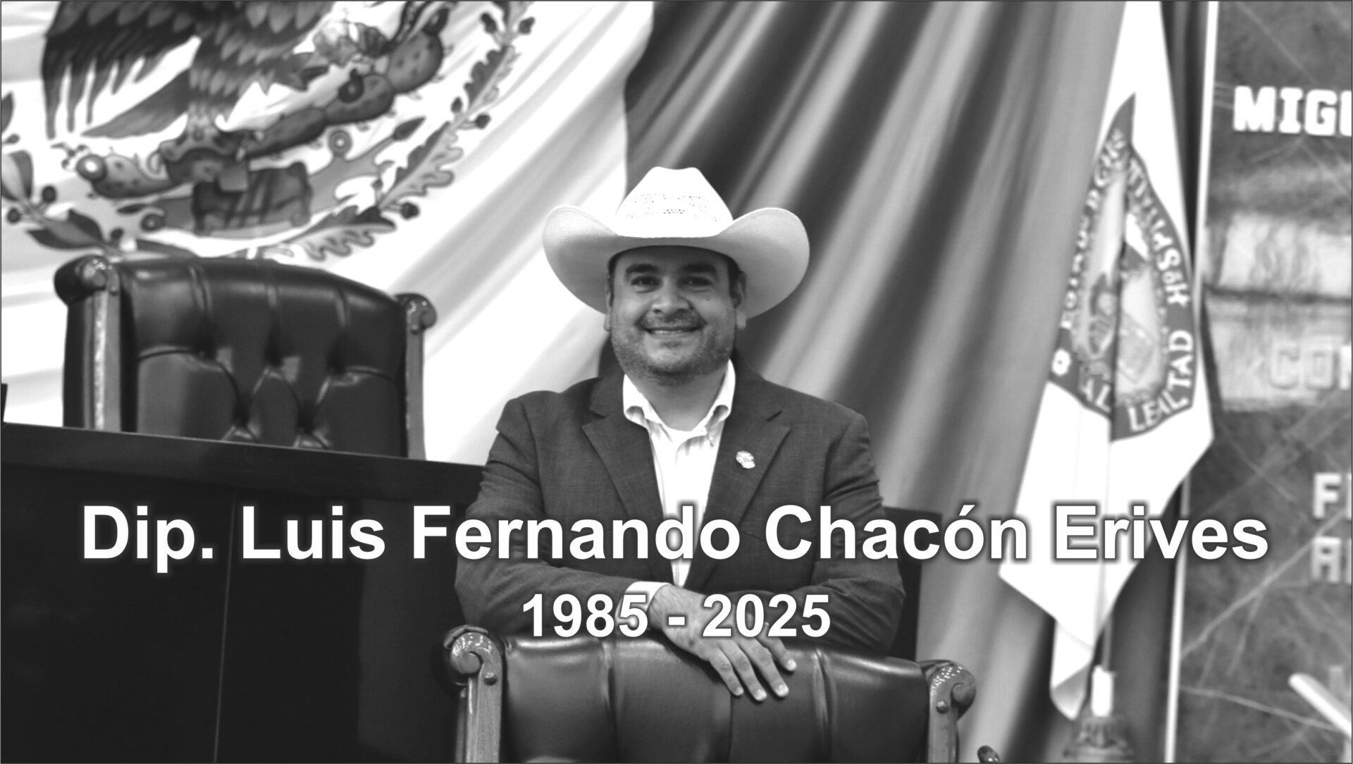 Este 28 de octubre, el Congreso del Estado de Chihuahua, llevó a cabo Sesión Solemne de Homenaje Póstumo en memoria del diputado Luis Fernando Chacón Erives, representante del distrito 13 con cabecera en Guerrero; distinguido legislador, servidor público y ser humano comprometido con el sector ganadero y el campo chihuahuense, siempre entregado a su comunidad. El acto solemne estuvo encabezado por representantes de los Tres Poderes del Estado.