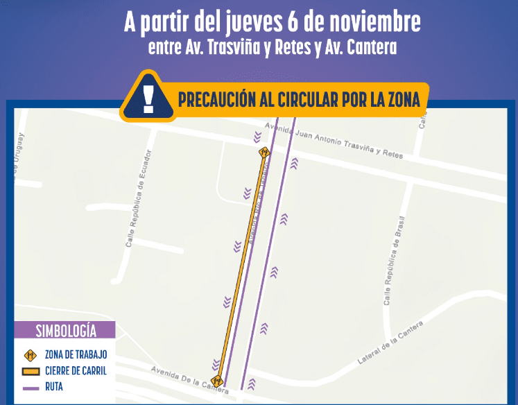 Las maniobras se efectuarán entre las calles Trasviña y Retes, y Cantera, por lo que se verá afectado el tránsito vehicular en dicho tramo, por lo que se exhorta a los conductores a utilizar vías alternas para evitar posibles congestionamientos.
