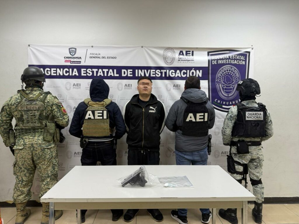 Elementos de Agencia Estatal de Investigación adscritos al Centro de Operaciones Estratégicas de la Fiscalía de Distrito Zona Norte, detuvieron en flagrancia a quien se identificó como Eduardo Javier A. C., de 31 años, por encontrarse en posesión de un arma de fuego y droga.