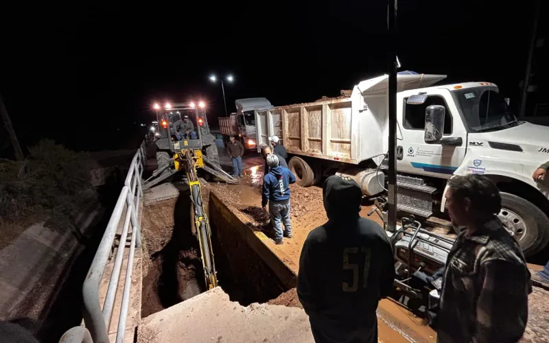 La Junta Municipal de Agua y Saneamiento (JMAS) de Chihuahua, informó que iniciaron con las labores para reparar dos fallas presentadas en tramos de la conducción Tabalaopa-Aldama, sobre la avenida Fuerza Aérea.