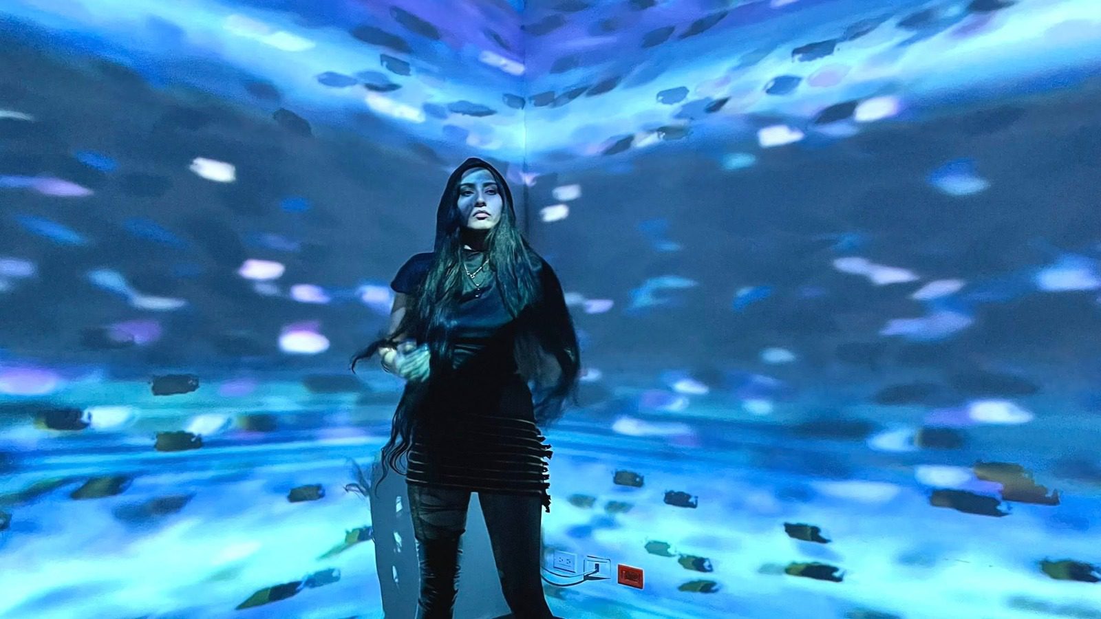 La intervención combinó luces, sonido, proyecciones y música para transportar al público a un recorrido audiovisual inspirado en la cultura rave, desde sus orígenes hasta su evolución en la escena contemporánea.