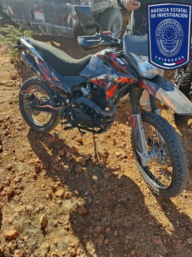 Elementos de la Agencia Estatal de Investigación (AEI) adscritos a la Fiscalía de Distrito Zona Sur, recuperaron una motocicleta de la marca Italika, línea DM250, modelo 2023, que contaba con reporte de robo interpuesto el 22 de noviembre del presente año, en la ciudad de Parral.