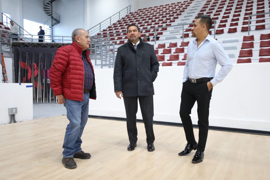 También se integraron pantallas gigantes, una cabina de transmisión, aulas renovadas en la planta baja y dos nuevos vestidores de gran capacidad, equipados con casilleros, lo que consolida al inmueble como un espacio deportivo moderno y competitivo para el disfrute de la comunidad juarense.