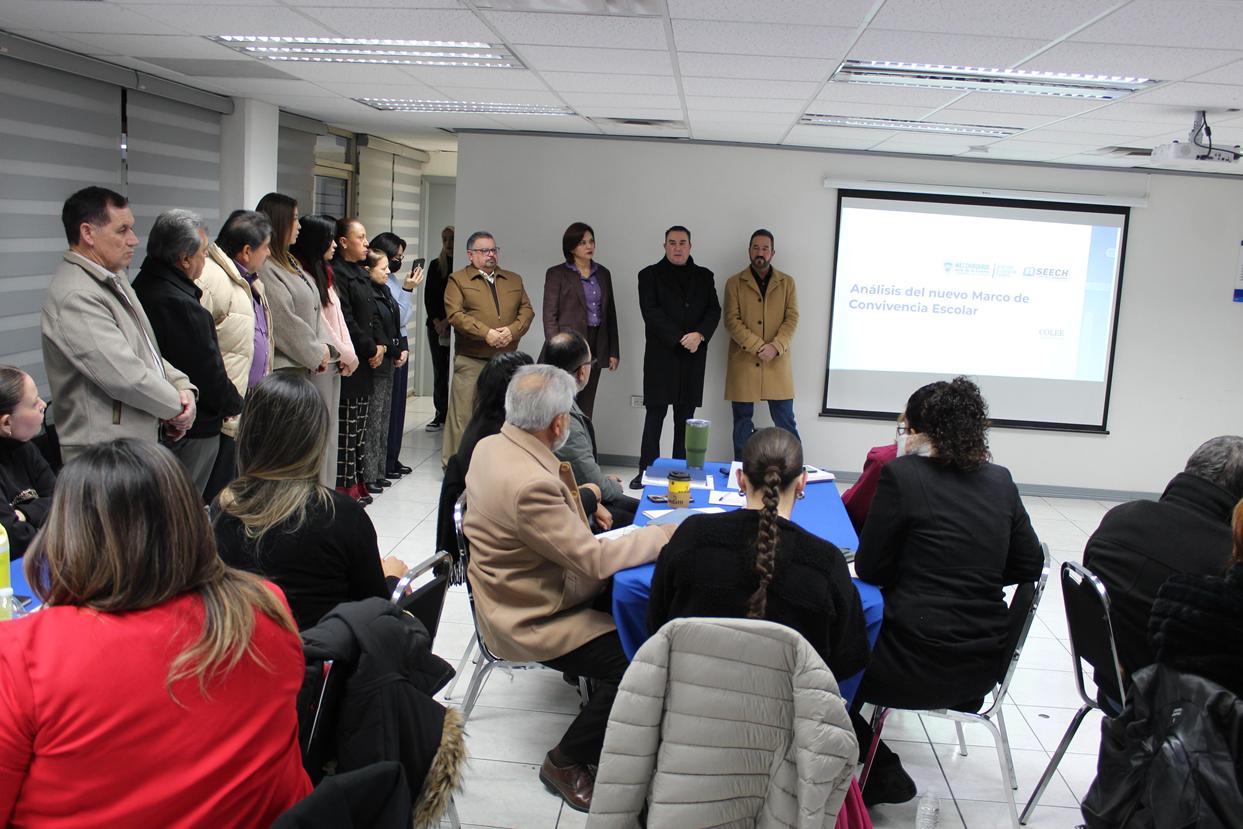 Con el objetivo de actualizar las reglas de los planteles educativos y brindar certeza jurídica al magisterio, la Secretaría de Educación y Deporte (SEyD) y Servicios Educativos del Estado de Chihuahua (SEECH) continúan con las mesas de análisis del Marco Local de Convivencia Escolar.