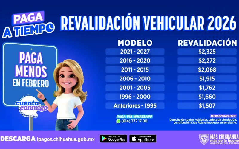 El Gobierno del Estado, a través de la Secretaría de Hacienda, presentó en Ciudad Juárez la campaña de Revalidación Vehicular 2026, la cual contempla descuentos durante los meses de febrero, marzo y abril.