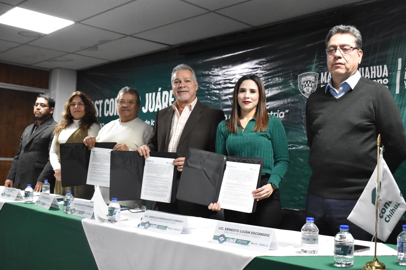 Con el objetivo de fortalecer la vinculación entre el sector educativo y el sector productivo, se llevó a cabo la firma del convenio marco de colaboración entre el Colegio de Educación Profesional Técnica del Estado de Chihuahua (Conalep) y la Unión de Yonkeros Importadores de Ciudad Juárez A.C., en las instalaciones del CAST Conalep en Ciudad Juárez.