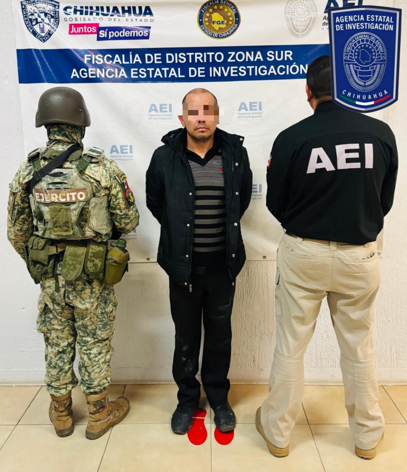 La Fiscalía de Distrito Zona Sur, en coordinación con la Agencia Estatal de Investigación (AEI) y Personal del Ejército Mexicano, detuvieron a un masculino de nombre Edgar Concepción P. Q., quien contaba con una orden de aprehensión por el delito de robo con penalidad a gravada.
