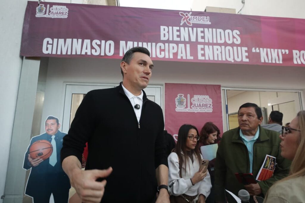Ciudad Juárez.- Las nuevas instalaciones del Gimnasio Municipal Enrique “Kiki” Romero se consolidan como un espacio donde los sueños de niñas, niños y jóvenes pueden hacerse realidad, al tratarse de un recinto de primer nivel, afirmó el exbasquetbolista Eduardo “Lalo” Nájera, durante la ceremonia de reinauguración del inmueble.