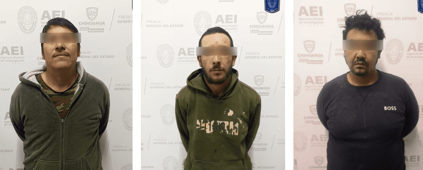 Elementos de la Agencia Estatal de Investigación que participan en el operativo de prevención y vigilancia, detuvieron a tres masculinos por delitos contra la salud y posesión de arma de fuego, en el poblado de Huapoca, municipio de Madera.