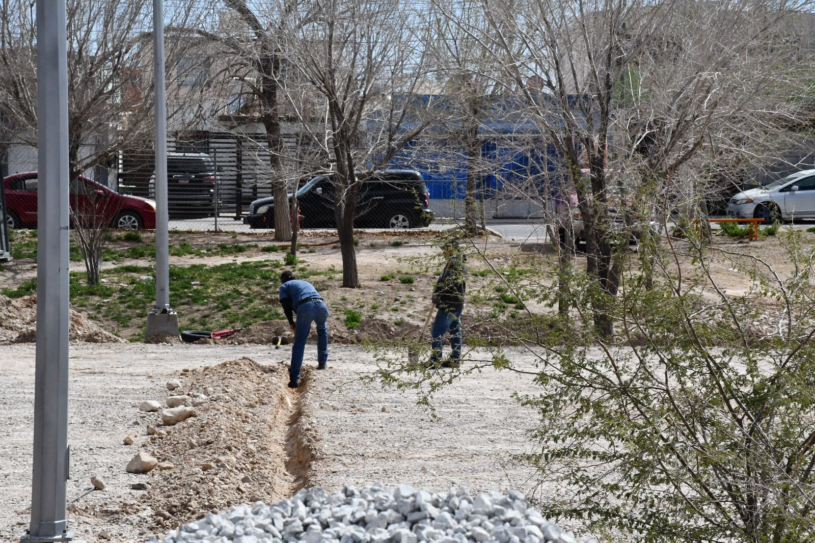 Ciudad Juárez.- Como parte de los proyectos del Presupuesto Participativo, la Dirección General de Obras Públicas trabaja en la construcción de una cancha de Hand Ball en la colonia Torres del Sur, espacio que impulsa este deporte entre las y los jóvenes de la ciudad.