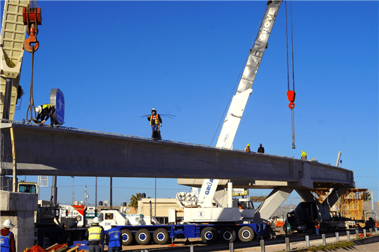 Actualmente, las labores se concentran en el montaje de trabes para la conformación de la superestructura de los puentes, habiéndose instalado hasta el momento 24 trabes de concreto reforzado en diferentes secciones de los cuerpos norte y sur.