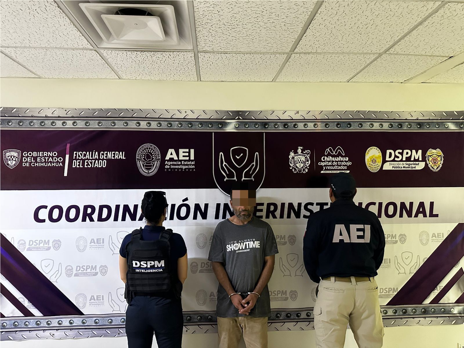 La captura se realizó en colaboración la Unidad de órdenes de aprehensión de la AEI y la Unidad de Género de la Dirección de Seguridad Pública Municipal; tuvo lugar esta noche en la colonia Los Arcos en la ciudad de Chihuahua y fue puesto a disposición del Tribunal, en el Distrito Judicial Morelos.