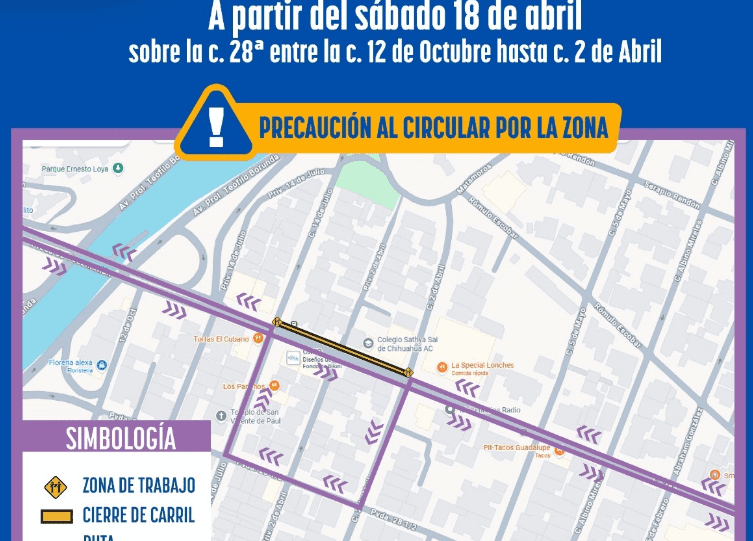 La Junta Municipal de Agua y Saneamiento (JMAS) de Chihuahua informa que este 18 de abril iniciará la rehabilitación de la línea de agua potable en la calle 28, entre 14 de Julio y 2 de Abril, en la colonia Guadalupe.