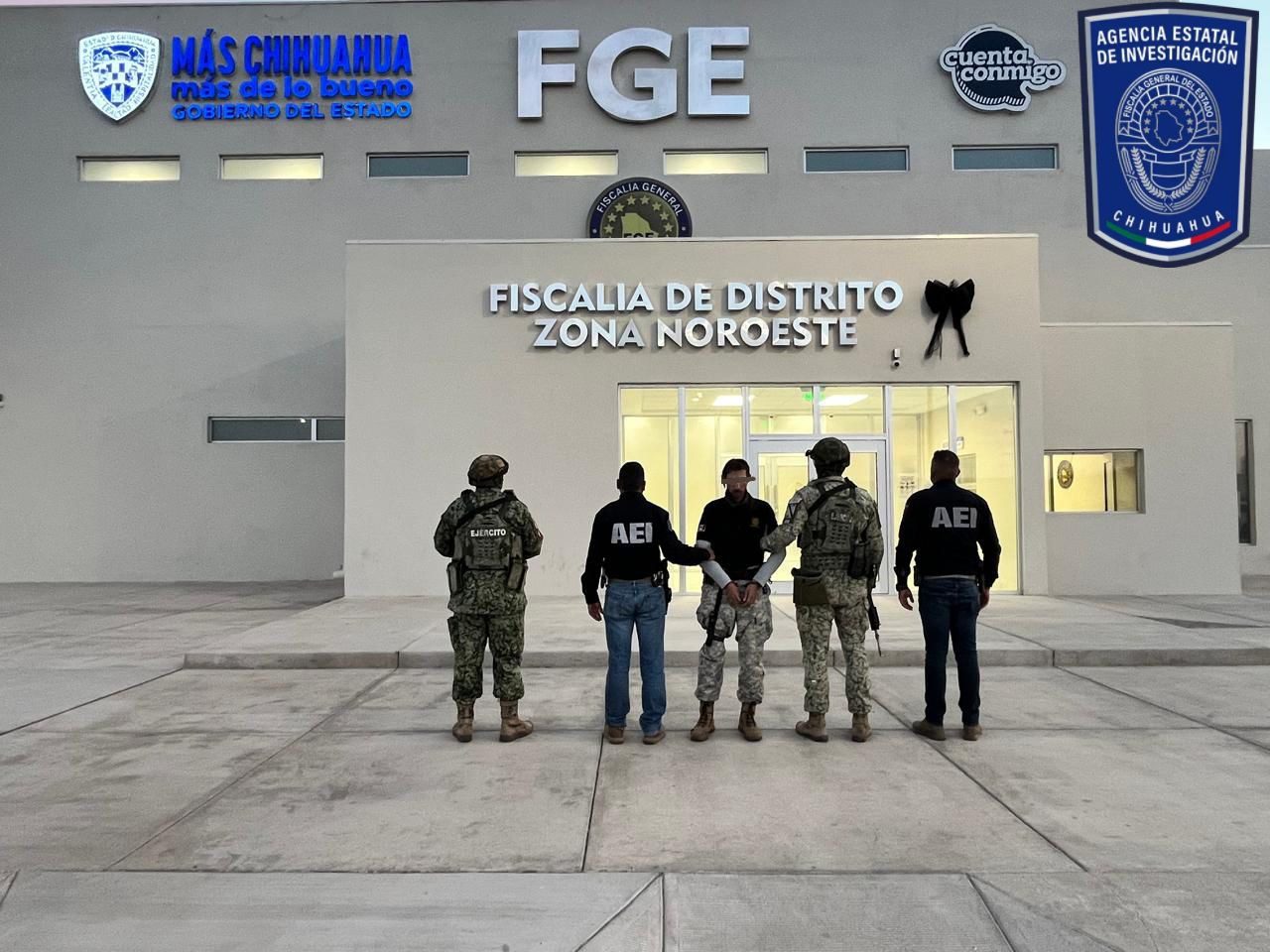Elementos de la Agencia Estatal de Investigación (AEI), adscritos a la Fiscalía de Distrito Zona Noroeste, detuvieron en los términos de la flagrancia a quien se identificó como Omar O. P., por el delito de usurpación de funciones, cometido en el municipio de Nuevo Casas Grandes.