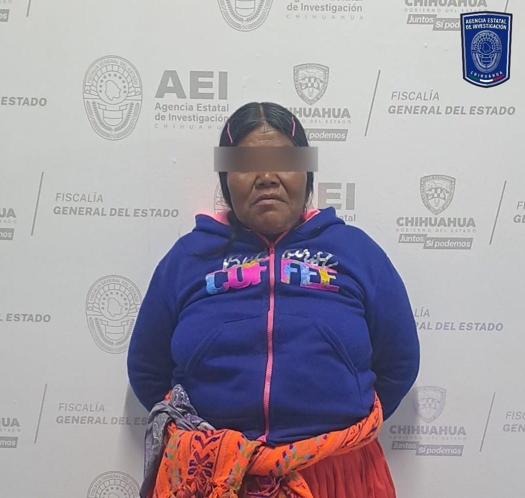 Elementos de la Agencia Estatal de Investigación adscritos a la Fiscalía de Distrito Zona Occidente, en el destacamento de Creel, municipio de Bocoyna, detuvieron con una orden de aprehensión a Lucía A. C., y/o Lucía Rosa A. C., por el delito de homicidio calificado.