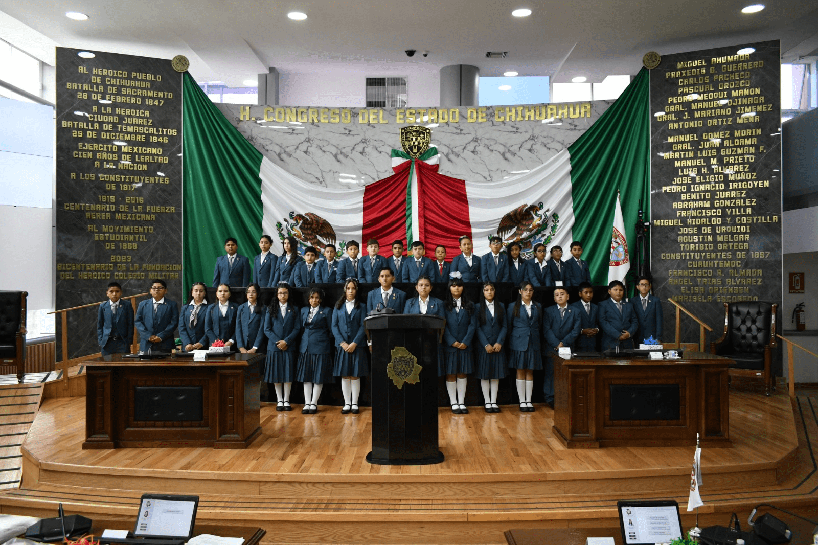 El Congreso del Estado de Chihuahua celebró este 30 de abril la tradicional Sesión de Homenaje “Diputada y Diputado Infantil por un día 2026”, en el marco del Día Mundial del Niño. En este evento, 33 estudiantes de sexto año de primaria ocuparon las curules del Poder Legislativo, representando a la niñez chihuahuense y presentando propuestas con temas de gran relevancia social.